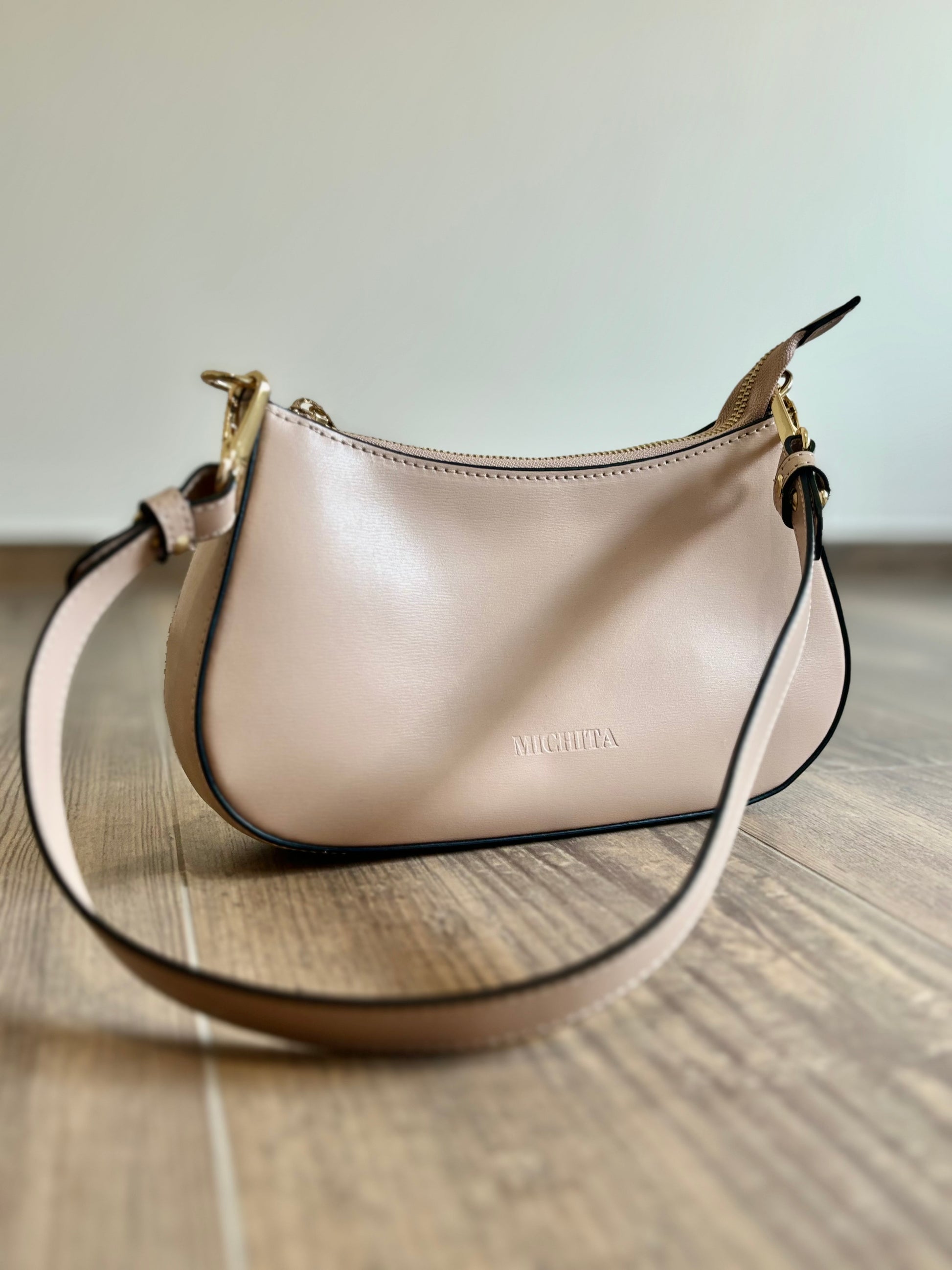 Michita Bag è una borsa dal design raffinato e minimalista, perfetta per ogni occasione. Ideale per chi cerca uno stile elegante senza rinunciare alla funzionalità. Realizzata interamente in Italia da esperti artigiani, in vera pelle Box, nota per la sua resistenza, per il suo aspetto luminoso e per la capacità di mantenere la forma nel tempo. Si porta comodamente a spalla(non è prevista tracolla lunga). Il logo frontale e gli hardware oro donano elementi eleganti e discreti. L'interno è completamente foderato ed è studiato per essere pratico grazie ai due taschini interni, uno con zip e uno senza. La MICHITA BAG è versatile, pensata per accompagnarti con stile in ogni momento della giornata.